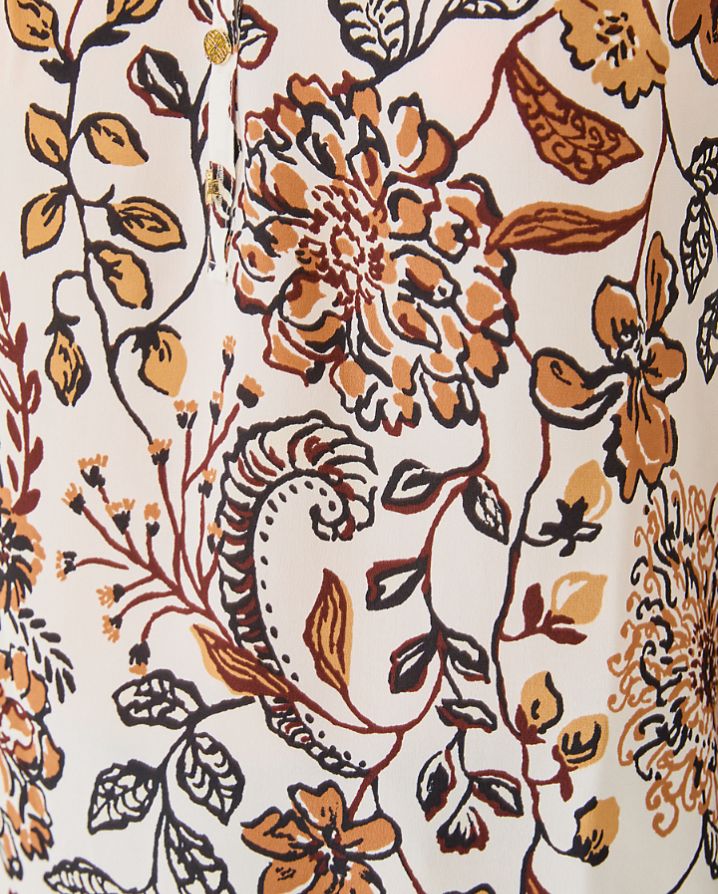 • Easy fit, pullover blouse with gold buttons and bracelet-length sleeves.