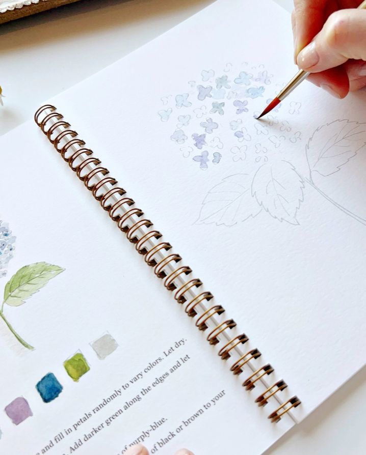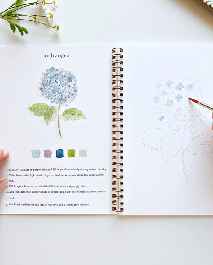 The Flower Watercolor Workbook includes 12 floral illustrations with an example of the finished painting, step-by-step instructions, and a lightly illustrated sketch for you to paint. It's just like a coloring book, but with watercolor!