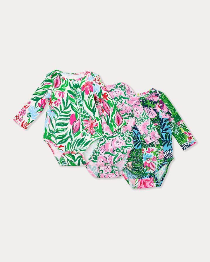 • Infant gift set featuring 3 long sleeve bodysuits with snap closures.